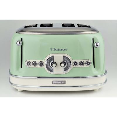 Выполненный в стильном ретро-дизайне тостер 156 серии Vintage от итальянской компании Ariete — это производительный тостер мощностью 1600 Вт. Особенностью рассматриваемой модели является возможность одновременного поджаривания четырех ломтиков хлеба, при этом степень прожарки регулируется по схеме 2 х 2.Вы сможете выбрать 1 из 6 уровней прожарки, и заручитесь поддержкой функции разморозки или подогрева ранее зажаренного тоста.