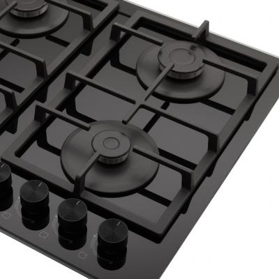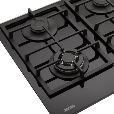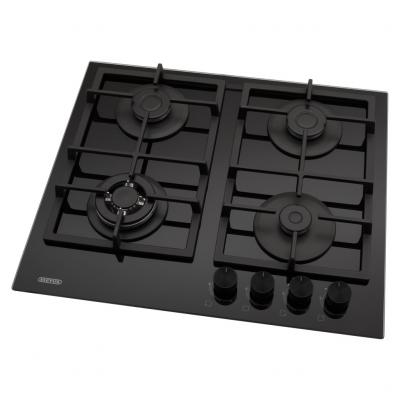 Тип поверхности - газовая, закаленное стекло, количество конфорок - 4, Передняя правая 1 кВт, Задняя правая 1.75 кВт, Задняя левая 1.75 кВт, Передняя левая 2.5 кВт, управление - механическое, Газ-контроль - есть, Электроподжиг - есть, Материал решеток - чугун, 220 В, Размеры ниши для встраивания - 56 х 49 х 5 см, 10 кг, черный