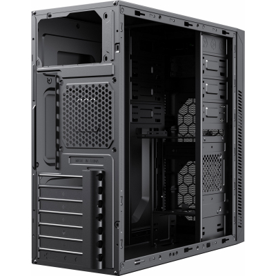 Хорошая циркуляция воздуха обеспечивается вентиляционными отверстиями боковой и задней панелей.Корпус поставляется с блоком питания мощностью 500 Вт.