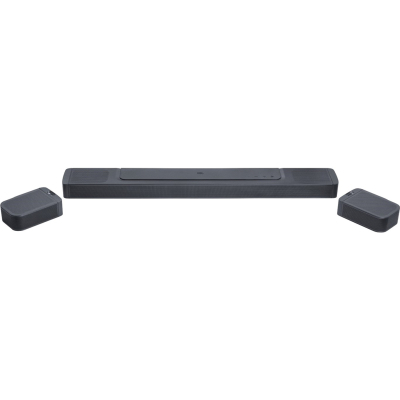 <br /><br />Саундбар JBL Bar 1000 оснащен технологией MultiBeam и четырьмя излучателями, направленными вверх: два на самом саундбаре и еще два — в съемных динамиках окружающего звука со встроенными аккумуляторами.