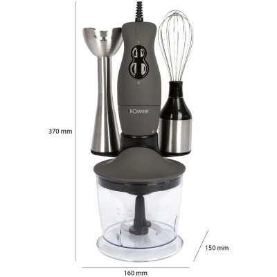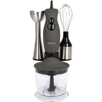 Универсальный блендер 3 в 1 SMS 6055 CB от Bomann, включая двигатель на 400 Вт, вы получаете ручной блендер, мульти-шредер и венчик - объединены в одно устройство. Ручной блендер просто идеально обрабатывает всё - будь то бананы, перец, морковь или грецкие орехи.