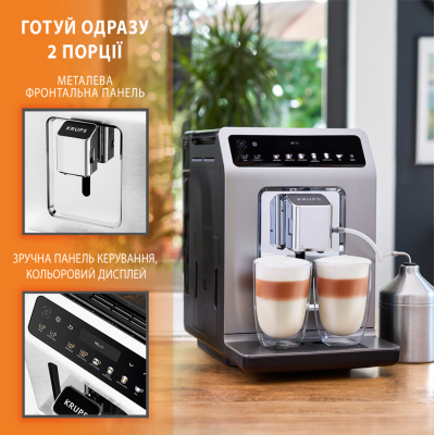 Настроить все это поможет информативная сенсорная панель.<br />Автоматическая кофемашина Krups, которая может приготовить за один сеанс сразу две чашки, порадует не только кофеманов.