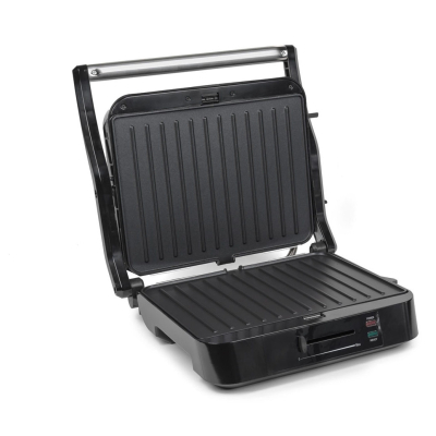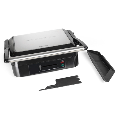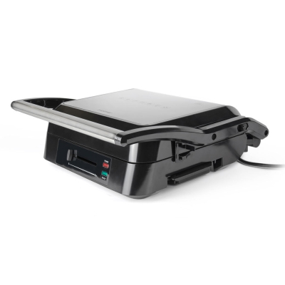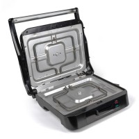 Особенности ненагревающаяся ручка,ребристая поверхность,индикатор работы,открытие на 180°,поддон для жира