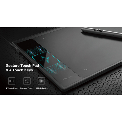 Особенности графического планшета VEIKK A30Умная сенсорная панель и 4 сенсорные клавиши. Сенсорная панель упрощает процесс увеличения и уменьшения масштаба, а также отмена/возврат и т.д.