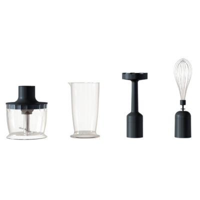 Этот ручной блендер поставляется с венчиком, чашей и мини-измельчителем.