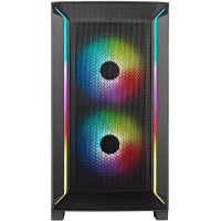 Геймерские, Minitower, Micro - ATX, Mini - ITX, Mini DTX, Слотов расширения - 4, Вентиляторы - 2 х 140 мм, Дополнительно - Back 1x12 см, Top 2x12/14 см, GPU - до 365 мм, CPU - 173 мм, PSU - 170 мм, кулеры с подсветкой, на передней панели, светодиодной системы освещения, 220 x 410 x 412.5 мм, 5.8, черный