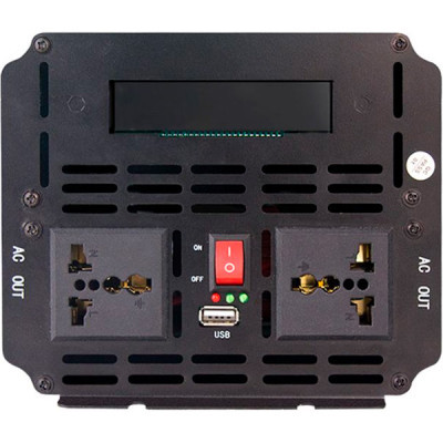 Переключение инвертора на автономную работу производится в течение 20 мс.Инвертор снабжен двумя розетками переменного тока и портом USB-A.