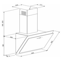 Тип - наклонная, настенная, 1200 м3/час, 200 Вт, 1, отвод воздуха и рециркуляция, ширина корпуса - 59.6 см, Диаметр вентиляционной трубы - 150 мм, Фильтры - алюминиевый, Тип управления - сенсорное, пульт ДУ, Материал корпуса - металл, стекло, Лампы - LED, 58 Дб, 870-1015 x 596 x 360 мм, черный
