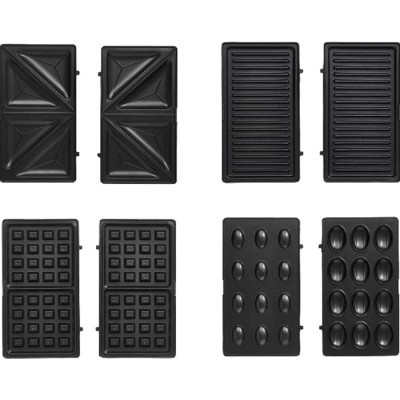 В приборе предусмотрено 4 комплекта съемных пластин с антипригарным покрытием, которые помогут вам приготовить не только нежнейшие вафли, бутерброды с хрустящей корочкой, но и блюда на гриле, а также испечь основу для любимых орешков со сгущенкой.
