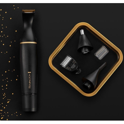 Лезвия триммера можно промывать под проточной водой.В комплекте:<ul><li>точный микротриммер</li><li>регулируемый гребень (1-5 мм) для ухода за волосами на лице</li><li>2 гребня для бровей (3 и 6 мм)</li><li>роторная насадка для носа и ушей</li></ul>Его можно смело использовать в душе и для влажной стрижки благодаря 100% водонепроницаемости.Фирменный дизайн линейки T-series с микротекстурной рукояткой выглядит премиально в стилизованном черном с золотистыми элементами.
