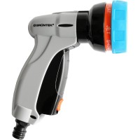 Надежный пистолет Gruntek предназначен для эффективного полива газона, клумб, кустарников, а также для мытья садового инвентаря и техники, для мытья машины, для смывания грязи с лестницы и дорожек.