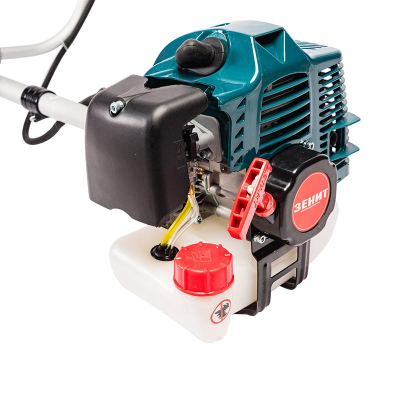 Предназначен для работы в самых разных условиях удаленности участка от постоянного источника питания, при сложных рельефах или при загрязненности участка покоса камнями, не боится работы в условиях осадков.Данная модель имеет оптимальный для полноценного покоса набор комплектующих: катушку с режущей леской, 3-х лопастной режущий нож, набор инструментов, плечевой ремень и эргономичные рукоятки управления велосипедного типа, значительно облегчающими работу оператора.Бензотриммер ЗЕНИТ ЗТБ-А 3000 нацелен на высокую производительность и показывает время работы при полной заправке бака до 30 мин.Основные технические параметрыБензотриммер садовый ЗЕНИТ ЗТБ-А 3000 является полностью свободным в перемещениях садовым инструментом, поскольку источник питания для его двигателя — топливная смесь из бензина и масла.Данная модель с 2-х тактным двигателем высокой мощности 3000/4,1 Вт/л.с.