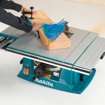 Настольная пила Makita MLT100N используется во время строительных и отделочных работ для точного распила деревянных заготовок.
