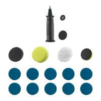 В набор входят шерстяная насадка, шлифовальные круги, черная вспененная полировальная насадка и шлифовальная подошва.