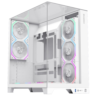 Геймерские, Miditower, ATX, Micro - ATX, Mini - ITX, Слотов расширения - 7, Вентиляторы - 5 х 120 мм, Дополнительно - Side 3x12 or 2x14 см, GPU - до 400 мм, CPU - 160 мм, PSU - 190 мм, кулеры с подсветкой, на нижней панели, на задней панели, 272 х 418 х 454 мм, 8.8, белый