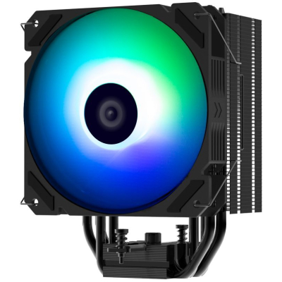 Оснащён 120-мм вентилятором с ARGB-подсветкой, обеспечивающей яркие визуальные эффекты и регулировку скорости через PWM.