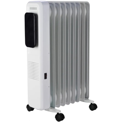 Бытовой, 25 кв.м, 2000 Вт, электронное, пульт ДУ, напольный, защита от замерзания, защита от перегрева, настройка времени работы, 7 кг, белый, масляный обогреватель