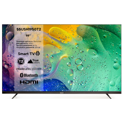 Мощный 4-ядерный процессор обеспечивает быструю и плавную работу, позволяя загружать любимые приложения, игры и стриминговые сервисы.Быстрый доступ к развлечениям: благодаря встроенному Wi-Fi и веб-браузеру вы можете мгновенно смотреть YouTube, Netflix, общаться в соцсетях или искать информацию в интернете.Удобное подключение: Bluetooth 5.2 позволяет подключить беспроводную акустику или наушники, а Wi-Fi Display — транслировать контент прямо со смартфона.Превосходный звук и разнообразные подключения<ul><li>Мощный звук: два встроенных стереодинамика по 10 Вт обеспечивают чистое и объемное звучание, которое полностью погружает вас в событие на экране.</li><li>Все для подключения: телевизор оснащен всеми необходимыми портами для ваших устройств</li><li>3 х HDMI для подключения игровых консолей, ноутбуков и плееров.</li><li>2 х USB для просмотра контента с флешек и внешних дисков.</li><li>Аналоговый и цифровой тюнеры (DVB-C/DVB-T/DVB-T2/DVB-S2), чтобы вы могли смотреть эфирное, спутниковое и кабельное телевидение без дополнительного оборудования.</li><li>А также LAN port, AV IN, выходы на наушники и оптический выход для максимальной гибкости.</li></ul>Romsat 55USH1950T2 — это разумный выбор для тех, кто ищет качество, стиль и безграничные возможности для развлечений.