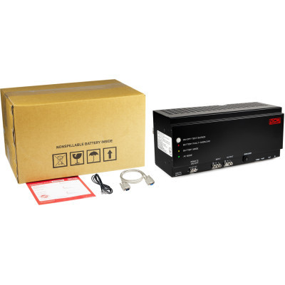 Устройство имеет встроенную аккумуляторную батарею (12В 9Ач) и предназначен для установки в электрошкаф, с креплением на DIN-рейку.