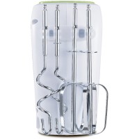 Оснащен двумя венчиками для взбивания и дополнительными насадками для затворения теста.