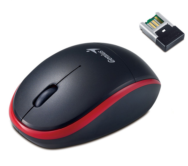 Мышка от Genius имеет симметричную конструкцию, разрешение оптического датчика манипулятора составляет 1200 точек на дюйм, 2,4 Ггц технологию автоматических перескоков по частоте (Auto-frequency-hopping Technology), снабжена тремя кнопками, и может похвастать удобной монтажной системой Stick-N-Go, позволяющей прочно крепить мышь к поверхности ноутбука для более легкой переноски.