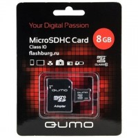 Карта памяти 8Gb microSDHC Qumo Class10 / SD адаптер / QM8GMICSDHC10