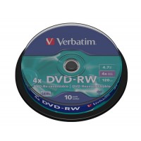 Диск DVD-RW 10 Verbatim, 4.7GB, 4x, Cake Box (43552)