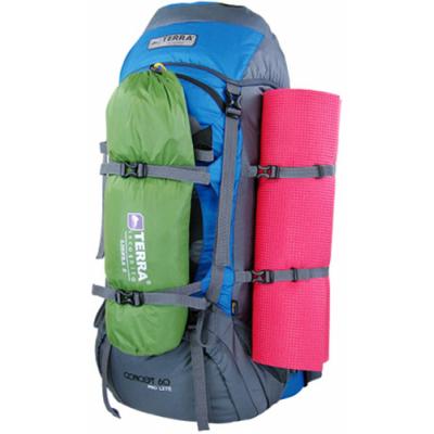 Рюкзак туристический Terra Incognita Concept 60 PRO LITE blue /gray - это многофункциональный облегчённый туристический рюкзак с жестким каркасом и объемом 60 л для альпинизма, высотных восхождений, экстремальных экспедиций, горных походов.Рюкзак оснащается анатомическими лямками, вентилируемой спинкой, грудной стяжкой, двумя боковыми карманами, карманом на клапане, креплением для шлема, нижним входом, регулируемым поясным ремнем, совместим с питьевой системой.Подвесная система полужесткой анатомической конструкции обеспечивает отличную вентиляцию спины и точную подгонку под любую фигуру. Внутренний каркас состоит из двух параллельных алюминиевых пластин, равномерно распределяющих нагрузку со спины на поясной ремень.