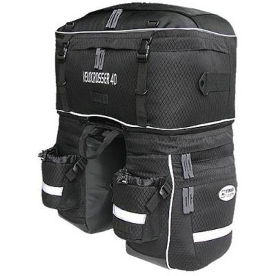 Дно и части, которые обращенные к багажнику и колесам, специально усилены жесткой моющейся тканью 600D Polyester Rip Stop и продублированы уплотнителем, что защищает его от зацепов, проколов и других нежелательных повреждений.Велорюкзак подходит для задних багажников практически любого размера, благодаря гибкой конструкции крепления и универсальной застежки FASTEX.