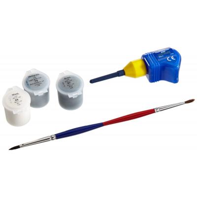 Помимо самолета в наборе имеются базовые краски с клеем и кисточкой.