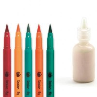 В комплект для детского творчества входят 4 вида фона, 5 двусторонних фломастеров, пузырек с перламутровым клеем и красочная инструкция.