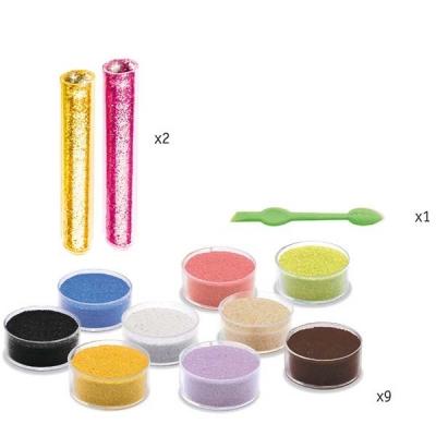 С помощью набора для творчества Djeco рисование цветным песком Чудеса леса (DJ08662) ребенок сможет создать четыре картины из цветного писка. Картинки-основы разделены на сегменты, повторяющие элементы изображения.