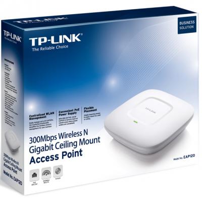 Точка доступа Wi-Fi TP-Link EAP120Точка доступа для бизнеса EAP120 от компании TP-LINK представляет собой удобное в управлении и простое в размещении беспроводное решение с надёжной защитой. Устройство обладает удобным дизайном для лёгкой установки на стене или на потолке.