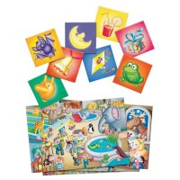 В наборе ребенка ждет 6 больших картинок с иллюстрациями, на которых представлены места и ситуации, которые очень любят маленькие дети: экскурсия в зоопарк, отдых на речке или катание на каруселях в парке.