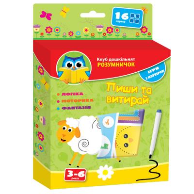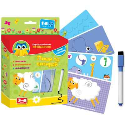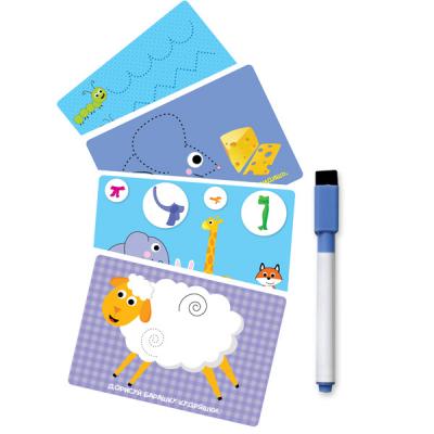 Комплектация: 16 односторонних карточек — 16 заданий; маркер с губкой «Пиши и вытирай».