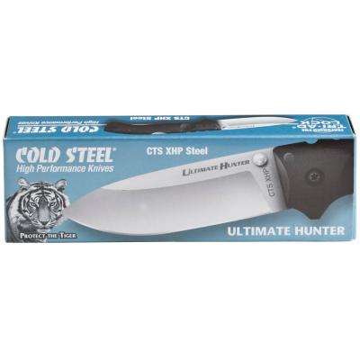 Нож Ultimate Hunter -это результат сотрудничества президента компании Cold Steel Линна Томпсона и дизайнера Андрея Демко. Дизайн данной модели разрабатывался на протяжении 3-х лет, а полевые испытания проводились на 4-х континентах, где нож хорошо зарекомендовал себя в качестве инструмента для разделки дичи и снятия шкуры.Клинок в стиле Drop Point выполнен из американской нержавеющей стали CTS XHP, твердостью 60-61 HRC, что отличается великолепными режущими свойствами, высокой износостойкостью и хорошей устойчивостью к коррозии.Рукоять изготовлена из прочного материала G10.