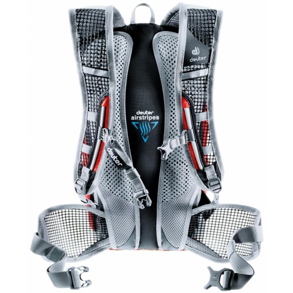 При этом в нем помещается все, что нужно: насос, инструменты, смартфон и он отлично сидит на спине.Особенности:сетчатые лямки и крылья пояса, система трехсторонней вентиляции Airstripesсовместимость с питьевой системойотделение для влажных вещейпросторный фронтальный карман для смартфона, инструментов, ключей и пр.петли для шлемодержателясъемный чехол от дождясветоотражательные принты3M светоотражатель на поясесетчатые боковые карманыDeuter Airstripes System BikeАнатомические плечевые лямки обшиты материалом 3D AirMesh и обеспечивают свободу движений.