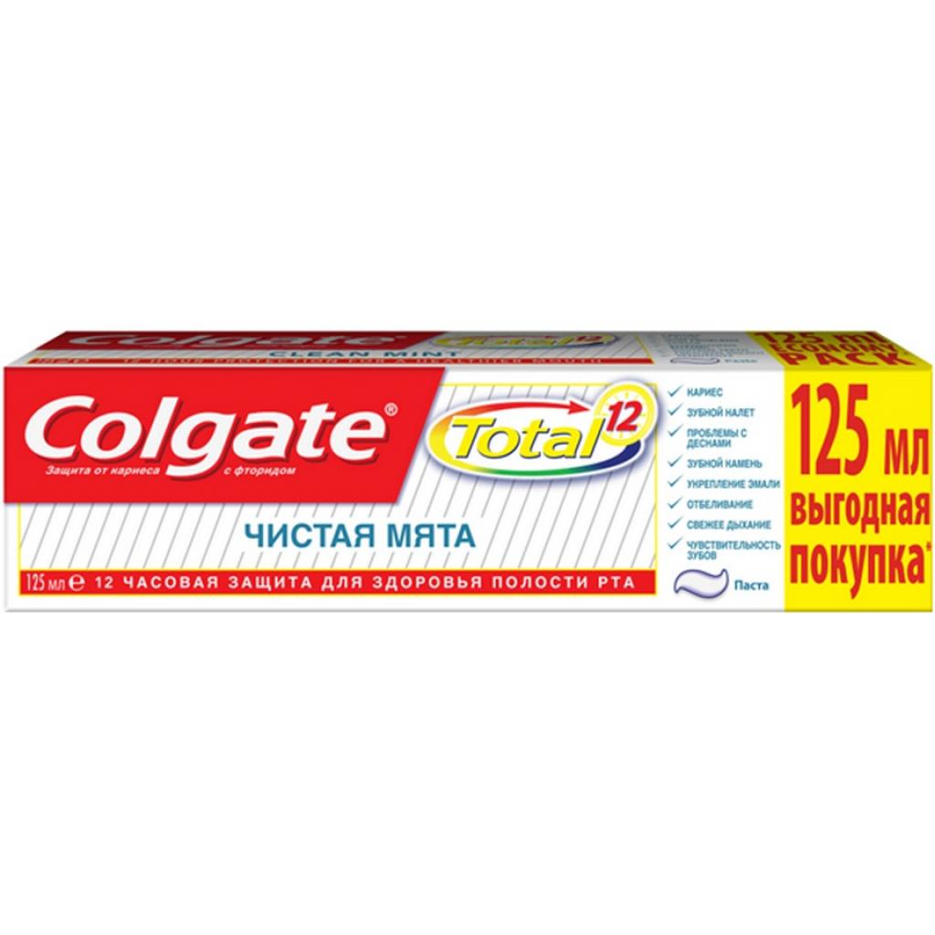 Зубная паста Colgate Total 12 Чистая мятаимеет выраженный и приятный вкус мяты. Оставляет после чистки охлаждающий вкус мяты и освежает дыхание.