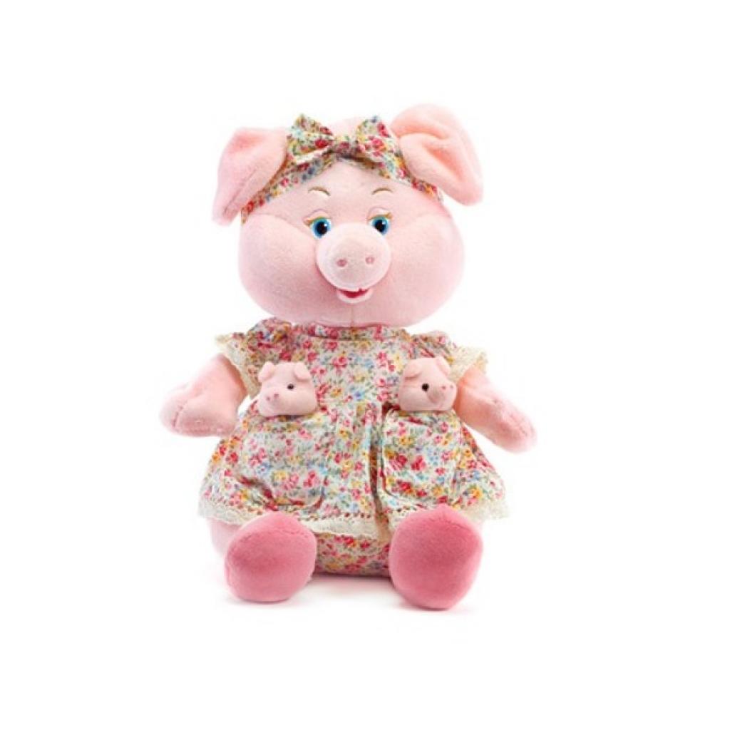 Такая свинка станет верной спутницей детишек во всех их играх!Одета свинка в миленькое платьице в цветочек, и повязку с бантиком на голове.