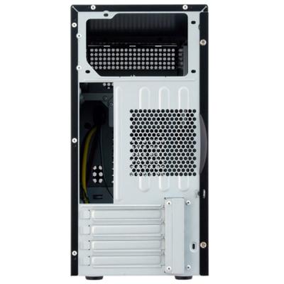 Она выполнена из пластика, а посадочные места для одного 3,5" и двух 5,25" дюймовых устройств закрыты металлическими заглушками с мелкой перфорацией.