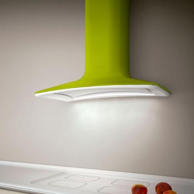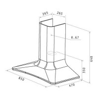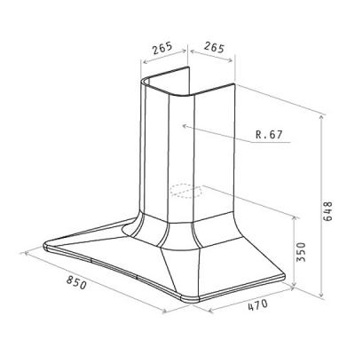 Дизайн приобретает изгибистые линии и актуальность, благодаря использованию технополимера, который эффектно смотрится на фоне тонкой линии из глянцевой стали, подчеркивающей его формы, что стало возможным вследствие эволюции каминной вытяжки.Вытяжка работает в двух режимах - оттока и рециркуляции воздуха.