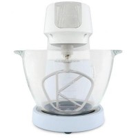 Она оснащена мотором на 1200 Вт и комплектуется К-образной насадкой, крюком для теста и венчиком.