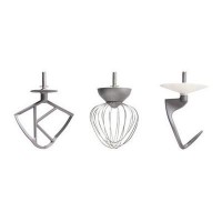 Она оснащена мотором на 1200 Вт и комплектуется К-образной насадкой, крюком для теста и венчиком.