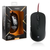 Vinga MSG-868 black — компактная, бесшумная проводная мышь для ПК и лэптопов. Она подключается к устройствам через встроенный кабель USB и по совокупным техническим характеристикам относится к категории игровых.
