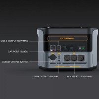 Вона оснащена трьома розетками змінного струму, трьома роз’ємами постійного струму, трьома портами USB-А 18Вт, двома портами USB-C PD 100Вт та одним регульованим автомобільним портом 12 В/10 А.Ексклюзивна технологія V-Starting дозволяє використовувати зарядну станцію в якості пускового пристрою для автомобіля.