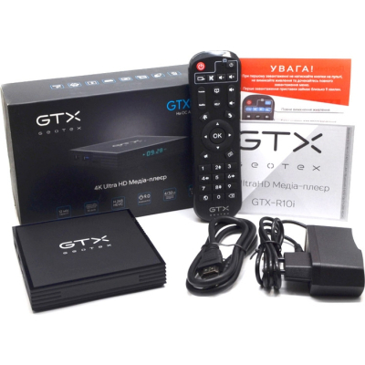 Поддержка Wi-Fi 2,4 и 5 ГГц, Bluetooth, LAN Ethernet, AirPlay, HDR 10+ и много чего другого.Особенности СМАРТ приставки Geotex GTX-R10i PRO:<ul><li>Новый процессор Amlogic S905X3</li><li>ОС Android 9.0 с полной локализацией и адаптацией под ТВ</li><li>Беспроводное обновление программного обеспечения</li><li>Усовершенствованная система охлаждения</li><li>Качественные материалы и сборка</li><li>Украинская сервисная поддержка</li><li>Модификации 2/16 ГБ и 4/32 ГБ памяти</li></ul>На приставке установлена полная версия приложения, которая имеет множество полезных функций и преимуществ:<ul><li>Возможность управления медиафайлами в один клик.</li><li>Таймер сна, что позволяет мониторить и контролировать режим.</li><li>Отображение недавно использованных программ, tvQuickActions по запросу открывает последние программы на любом устройстве.</li><li>Bluetooth-менеджер, который выполняет управление службами bluetooth.</li><li>Переключение Wi-Fi с помощью всего одной кнопки.</li><li>Запуск любых приложений установленных на приставке.</li><li>Открыть панель управления мультимедиа (с воспроизведением, паузой, остановкой, следующей/предыдущей дорожкой)</li></ul>ПроизводительностьГлавное отличие новой приставки Geotex GTX-R10i PRO это процессор.