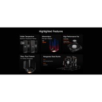 Мощные, но тихие HB PWM черные вентиляторы высокого качества с четким математическим балансом между потоком воздуха до 73.32 CFM и давлением до 3.28 мм H2O позволяют достичь 265 Вт мощности.Производитель порадовал видом верхней крышки с цифровым монитором, ставшей визитной карточкой этой модели - Вы всегда будете знать температуру процессора, для этого необходимо подключить кулер к USB2.0 порту материнской платы.