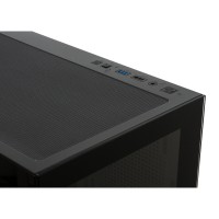На передней панели корпуса расположены удобные внешние разъемы: 1 x USB 3.0, 1 x USB 2.0, а также аудиоразъем, что позволяет легко подключать внешние устройства и аксессуары.