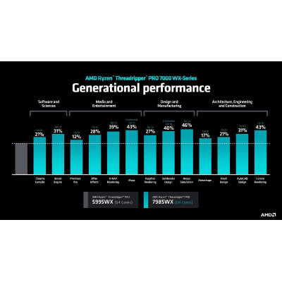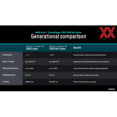 TR5, 32 ядра, 64 потока, 4.0 GHz, 5.3 GHz, Максимальный TDP - 350 Вт, 5nm, L1: 2MB, L2: 32MB, L3: 128MB, нет, AMD Zen 4, BOX без кулера