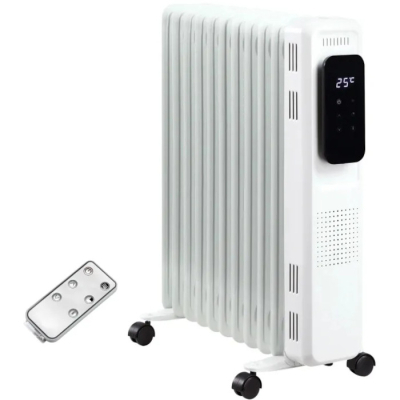 Бытовой, 25 кв.м, 2000 Вт, электронное, пульт ДУ, напольный, защита от замерзания, защита от перегрева, настройка времени работы, 7 кг, белый, масляный обогреватель